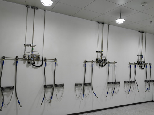 1.氣瓶間內水壓設定面板開關與實驗操作室內裝修的氣路手持終端之前選則SS316LBA管開始連結,管線網內的表面油亮度為Ra<0.4umBA級管線網。